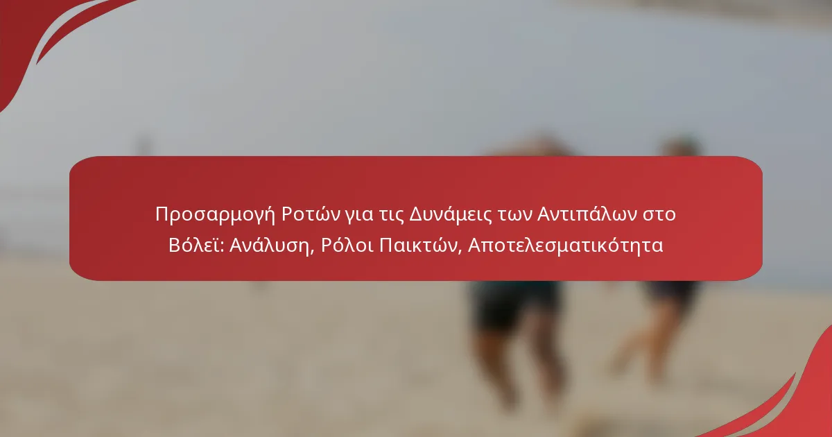 Η προσαρμογή των περιστροφών στο βόλεϊ για να αντισταθμίσει τις δυνάμεις των αντιπάλων είναι μια στρατηγική προσέγγιση που περιλαμβάνει προσεκτική ανάλυση των ικανοτήτων τους και προσαρμογή των θέσεων των παικτών αναλόγως. Αξιολογώντας την απόδοση της αντίπαλης ομάδας και εφαρμόζοντας τακτικές αλλαγές, οι προπονητές μπορούν να βελτιστοποιήσουν τους ρόλους των παικτών ώστε να εκμεταλλευτούν τις αδυναμίες και να ενισχύσουν τη συνολική αποτελεσματικότητα της ομάδας.