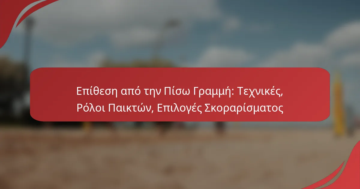 Η επίθεση από την πίσω σειρά είναι μια δυναμική επιθετική στρατηγική όπου οι παίκτες εκτελούν ισχυρές χτυπήματα από τη γραμμή του πίσω μέρους, χρησιμοποιώντας τεχνικές όπως ακριβή βήματα και χρονισμό. Αυτή η προσέγγιση όχι μόνο ενισχύει την πιθανότητα σκοραρίσματος αλλά και τονίζει τη σημασία των ρόλων των παικτών στη μετάβαση από την άμυνα στην επίθεση, προάγοντας την αποτελεσματική επικοινωνία με τους συμπαίκτες της μπροστινής σειράς. Εκμεταλλευόμενοι διάφορες επιλογές σκοραρίσματος, οι ομάδες μπορούν στρατηγικά να εκμεταλλευτούν τις αδυναμίες της άμυνας για να εξασφαλίσουν πόντους και να ενισχύσουν τη συνολική τους απόδοση.