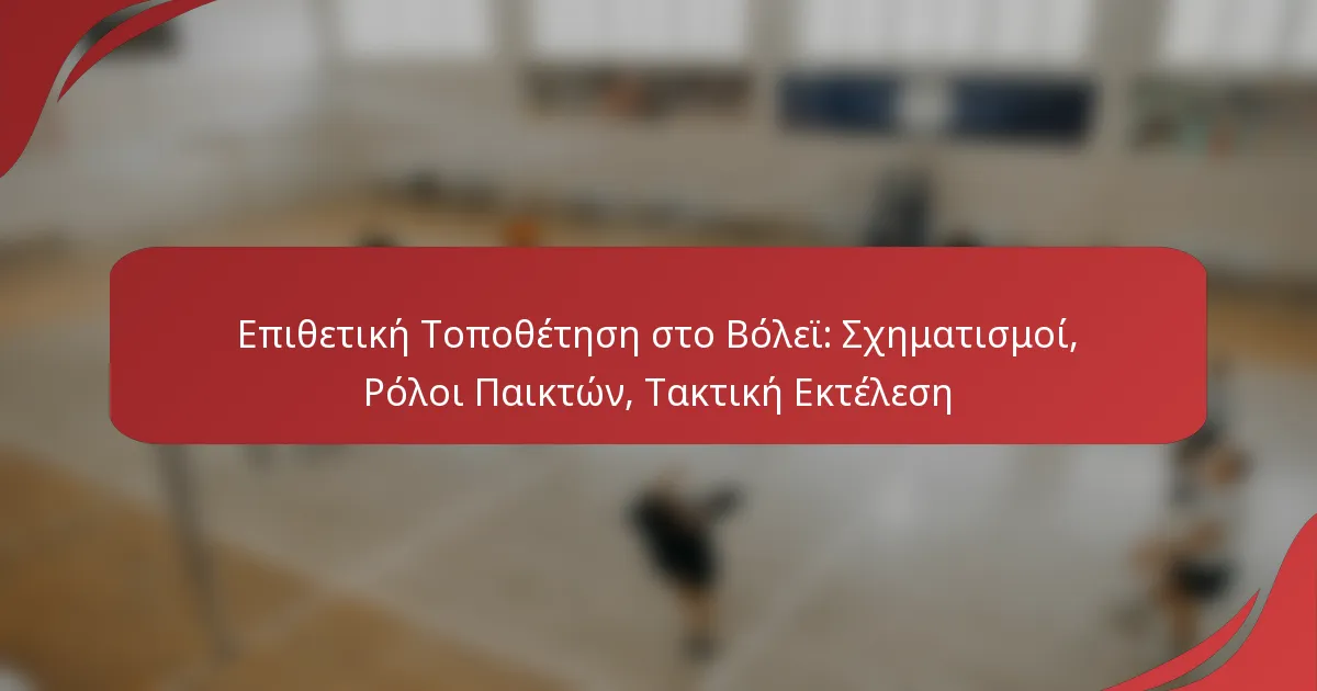 Στο βόλεϊ, η επιθετική τοποθέτηση περιλαμβάνει διακριτούς ρόλους παικτών που συμβάλλουν στην αποτελεσματική σκοραρίσματος και τη δυναμική της ομάδας. Κάθε θέση έχει συγκεκριμένες ευθύνες που ενισχύουν τη συνολική στρατηγική και εκτέλεση της ομάδας κατά τη διάρκεια των αγώνων.
